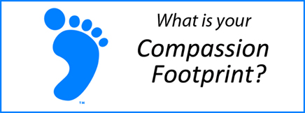 What is your Compassion Footprint? Your Compassion Footprint is like a Carbon Footprint, only more positive. Kindness is magic. So your Compassion Footprint is the impact, the ripple effect your kindness, empathy, and non-violence have upon everybody around you, and thus, the world.
